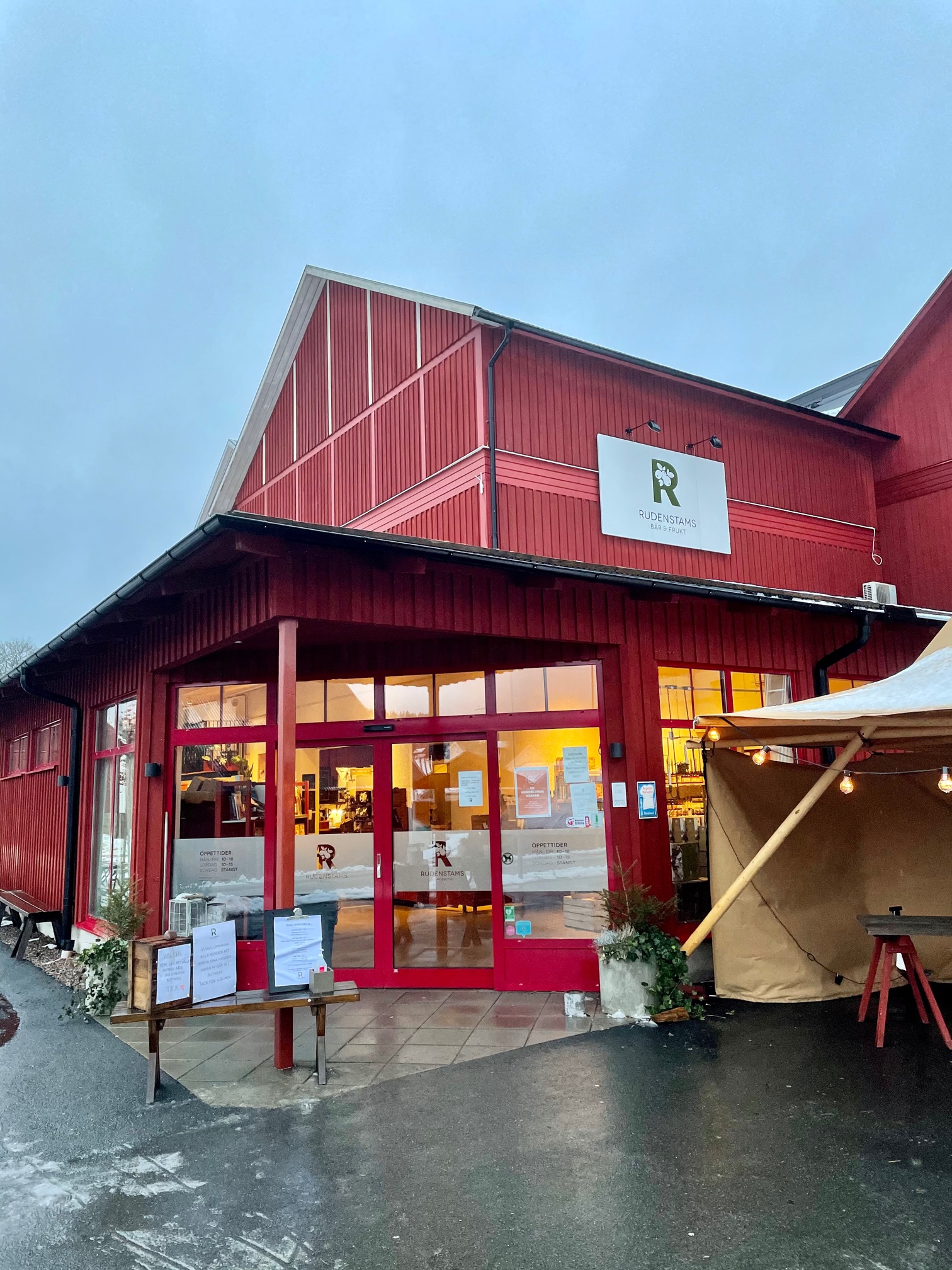 I Rudenstams kafé serveras riktigt bra grejer. Här finns fika, sallad, mat och mackor – allt gjort på lokala råvaror. Man serverar äpplemust och äppelkakor från gården året runt.